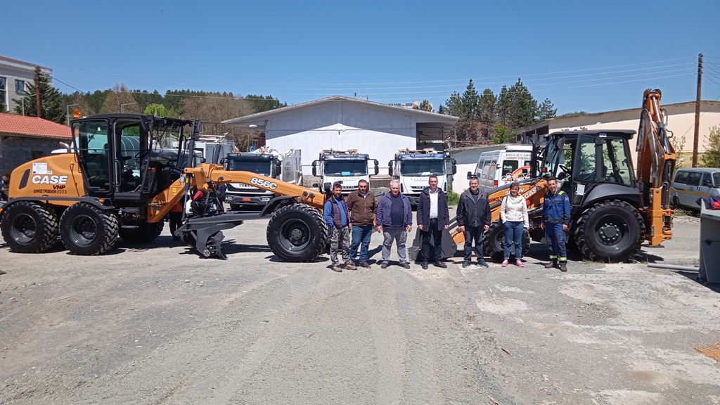 Παρουσία του Αντιδημάρχου Τεχνικών Έργων Χρήστου Τριγώνη, παρελήφθησαν την Παρασκευή 28 Απριλίου 2023 δύο νέα μηχανήματα έργου τελευταίας γενιάς, ένας ισοπεδωτής γαιών και ένας εκσκαφέας-φορτωτής, τα οποία προστίθενται στον στόλο της Πολιτικής Προστασίας του Δήμου Γρεβενών.