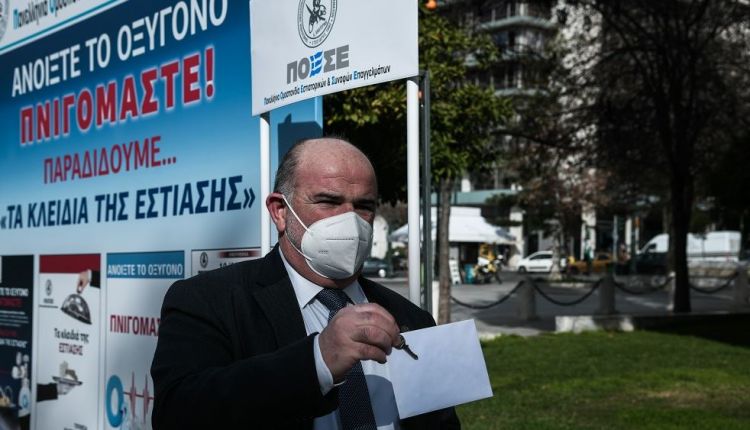 Σε μία συμβολική κίνηση, μετά από το κάλεσμα της Πανελλήνιας Ομοσπονδίας Εστιατορικών και Συναφών Επαγγελμάτων (ΠΟΕΣΕ), οι επιχειρηματίες της εστίασης, σε όλη τη χώρα, παρέδωσαν σήμερα τα κλειδιά των καταστημάτων τους, δηλώνοντας με αυτό τον τρόπο ότι έχουν ξεπεράσει τα όρια των αντοχών τους. Τα κλειδιά θα παραδοθούν τις επόμενες ημέρες στο Μέγαρο Μαξίμου από αντιπροσωπεία 99 επαγγελματιών και τον πρόεδρο της ΠΟΕΣΕ.