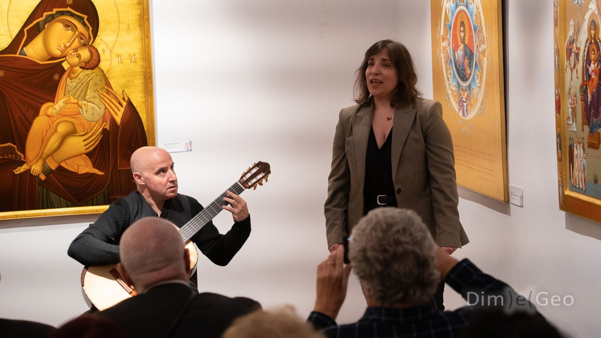 - Στο τρίτο μέρος στο χώρο της έκθεσης, ανάμεσα στα έργα του πατέρα του, ο γιός του αγιογράφου, Νικόλαος Μπαλογιάννης έκλεισε μουσικά τη βραδιά, με ένα μοναδικό ρεσιτάλ κιθάρας, ενώ η κόρη του αγιογράφου, Ευαγγελία Μπαλογιάννη και οι επισκέπτες-θεατές στο τέλος τραγούδησαν παρέα, δημιουργώντας ένα βαθύ αίσθημα συγκίνησης και ευφορίας!