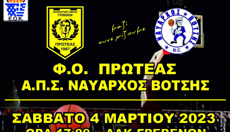 Β’ Εθνική Μπάσκετ: Φ.Ο.Πρωτέας Γρεβενών – Α.Π.Σ. Ναύαρχος Βότσης