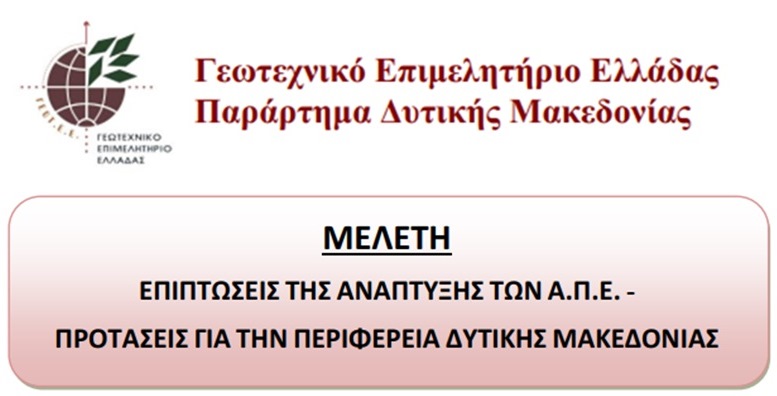 Το Περιφερειακό Παράρτημα Δυτικής Μακεδονίας του Γεωτεχνικού Επιμελητηρίου Ελλάδας (ΓΕΩΤ.Ε.Ε/Π.Δ.Μ), διοργανώνει ενημερωτική εκδήλωση για την παρουσίαση της μελέτης Ομάδας Εργασίας του Παραρτήματος με θέμα: «ΕΠΙΠΤΩΣΕΙΣ ΤΗΣ ΑΝΑΠΤΥΞΗΣ ΤΩΝ Α.Π.Ε. – ΠΡΟΤΑΣΕΙΣ ΓΙΑ ΤΗΝ ΠΕΡΙΦΕΡΕΙΑ ΔΥΤΙΚΗΣ ΜΑΚΕΔΟΝΙΑΣ»