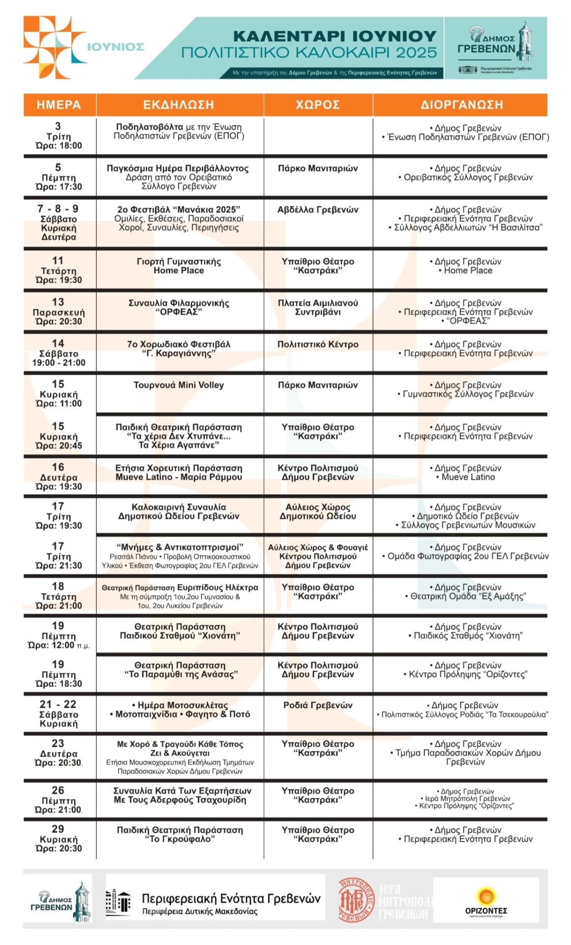 ΠΡΟΓΡΑΜΜΑ ΙΟΥΝΙΟΥ ΠΟΛΙΤΙΣΤΙΚΩΝ ΕΚΔΗΛΩΣΕΩΝ «ΠΟΛΙΤΙΣΤΙΚΟ ΚΑΛΟΚΑΙΡΙ 2025»