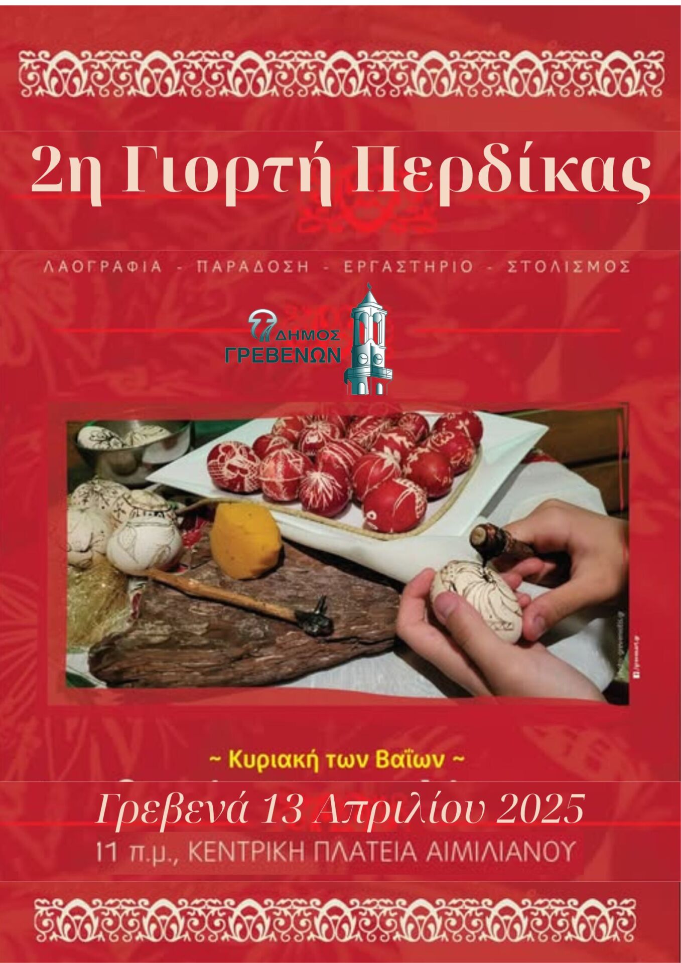 Με απόλυτη επιτυχία και πλήθος κόσμου, πραγματοποιήθηκε την Κυριακή των Βαΐων, 13 Απριλίου 2025, στην Κεντρική Πλατεία Γρεβενών, η 2ηη Γιορτή «ΠΕΡΔΙΚΑΣ».