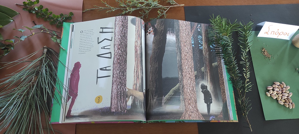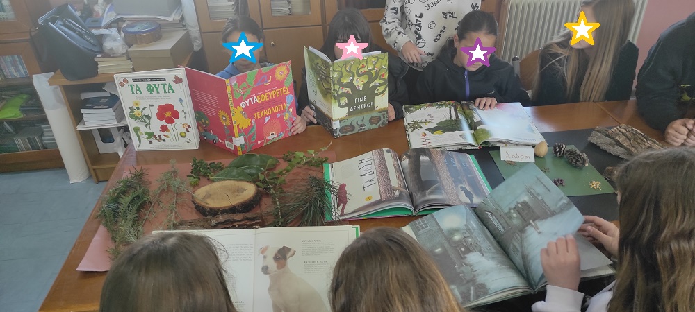 Μέσα από το βιβλίο « Η μυστική ζωή των δέντρων» του PeterWohlleben αντλήσαμε σημαντικές και συναρπαστικές πληροφορίες για την τόσο οργανωμένη και υποστηρικτική ζωή των δέντρων. Για τις φιλίες που αναπτύσσουν μεταξύ τους, τα όπλα που χρησιμοποιούν όταν κάποιος θηρευτής επιχειρεί να τους επιτεθεί. Απαντήθηκαν ερωτήσεις για τα ταξίδια των σπόρων, για το λιτό διατροφικό μενού των δέντρων, το ασύλληπτο ύψος ορισμένων, τον τρόπο που μετράμε την ηλικία τους, την «γλώσσα» επικοινωνίας που έχουν μεταξύ τους. Παρατηρήσαμε τα διαφορετικά είδη φύλλων και σπόρων που είχαμε συγκεντρώσει, καθώς και κομμάτι κορμού και φλούδες δέντρων που αγγίζοντας τα και παρατηρώντας τα μας έκαναν να κατανοήσουμε ότι ακούσαμε. Αγγίξαμε και νιώσαμε τη διαφορετική υφή των φύλλων, και είδαμε το διαφορετικό σχήμα τους. Επεξεργαστήκαμε τους σπόρους διαφόρων μεγεθών και χρωμάτων και φανταστήκαμε το πολυπόθητο ταξίδι τους ώσπου, να ριζώσουν και να θεριέψουν. Μετρήσαμε πάνω στον ξύλινο κορμό τους δακτυλίους και καταλάβαμε τις δυσκολίες που αντιμετώπισαν την κάθε χρονιά της ανάπτυξης τους.