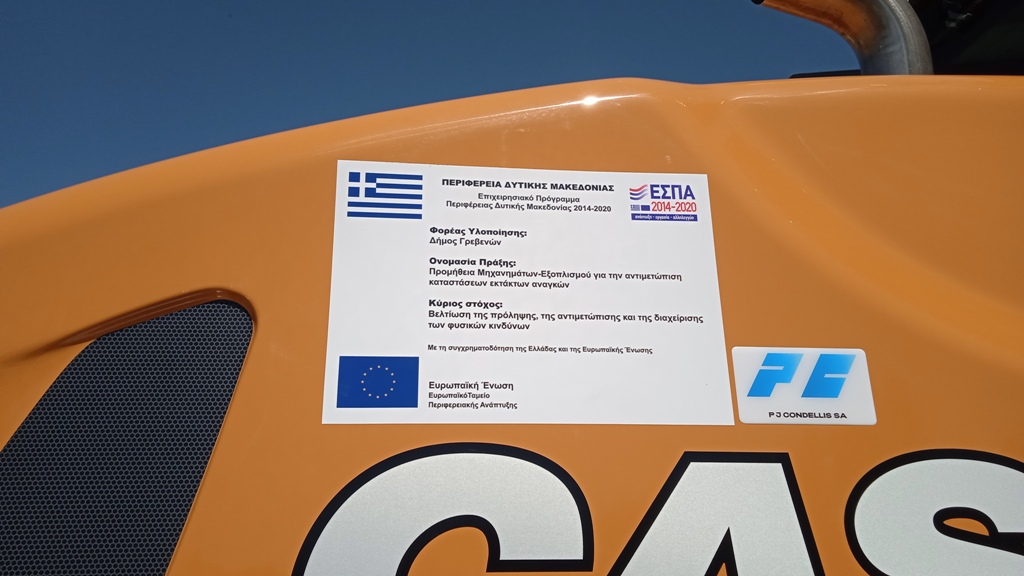 Παρουσία του Αντιδημάρχου Τεχνικών Έργων Χρήστου Τριγώνη, παρελήφθησαν την Παρασκευή 28 Απριλίου 2023 δύο νέα μηχανήματα έργου τελευταίας γενιάς, ένας ισοπεδωτής γαιών και ένας εκσκαφέας-φορτωτής, τα οποία προστίθενται στον στόλο της Πολιτικής Προστασίας του Δήμου Γρεβενών.