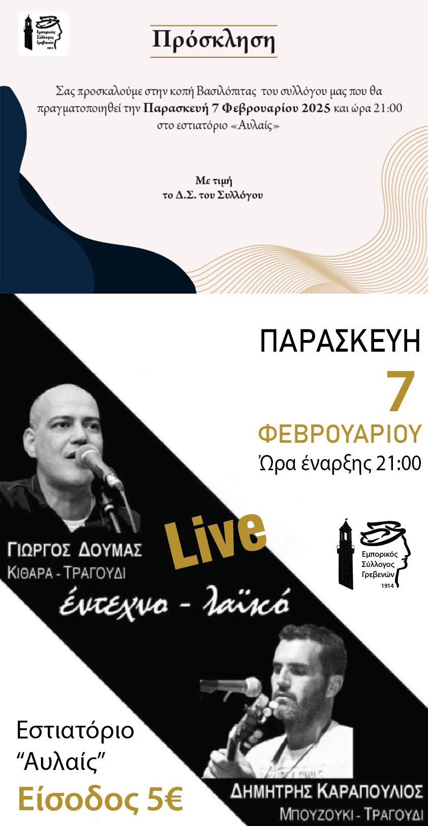 Ο Εμπορικός Σύλλογος Γρεβενών σας προσκαλεί στην κοπή της Πρωτοχρονιάτικης πίτας, που θα πραγματοποιηθεί την Παρασκευή 7 Φεβρουαρίου 2025 και ώρα 21:00 στο εστιατόριο Αυλαίς. Θα χαρούμε πολύ να μοιραστούμε μαζί σας τις προσδοκίες και τις ελπίδες μας για την καινούρια χρονιά. Η παρουσία σας θα μας τιμήσει ιδιαίτερα