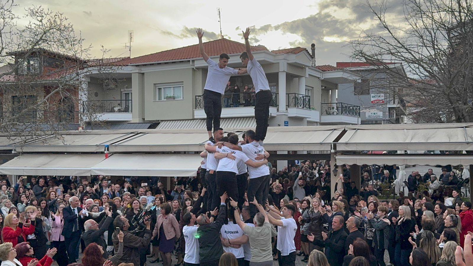 Η κορύφωση του εθίμου ήρθε με τον σχηματισμό της «Ανδρομάνας», μιας εντυπωσιακής ανθρώπινης πυραμίδας τριών επιπέδων που δημιούργησαν νέοι της περιοχής, αποσπώντας το θερμό χειροκρότημα των παρευρισκομένων.