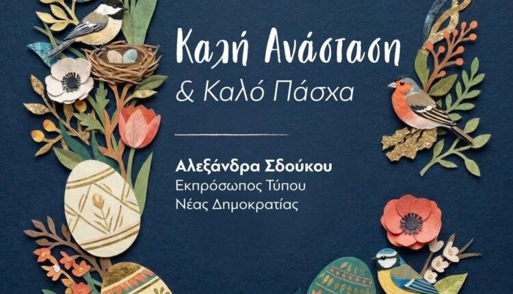 Ευχές από την Εκπρόσωπο Τύπου της Ν.Δ. Σδούκου Αλεξάνδρα Γρεβενά Από igrevena Στις Apr 8, 2026 Κοινοποίηση Πασχαλινές ευχέςΣδούκου Αλεξάνδρα Κοινοποίηση