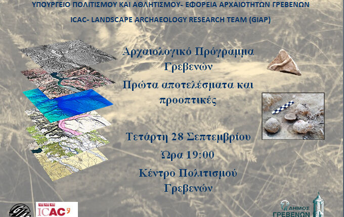 Η Εφορεία Αρχαιοτήτων Γρεβενών και ο Δήμος Γρεβενών συνδιοργανώνουν εκδήλωση την Τετάρτη 28.09.2022 και ώρα 19:00, στο Κέντρο Πολιτισμού του Δήμου Γρεβενών όπου  θα παρουσιασθούν τα αποτελέσματα της πρώτης ερευνητικής περιόδου  του Αρχαιολογικού Προγράμματος Γρεβενών που πραγματοποιήθηκε  το 2021. Στόχος  του Προγράμματος είναι να προωθήσει την έρευνα σε ζητήματα που άπτονται της διαχρονικής ιστορικής παρουσίας  της Π.Ε. Γρεβενών, να φωτίσει πτυχές της ιστορικής  της εξέλιξης μέσα από τη μελέτη των αρχαιολογικών  και ιστορικών πηγών και να καταδείξει τα  νέα στοιχεία που θα εμπλουτίσουν τις γνώσεις μας για το ρόλο και σημασία που είχε η άγνωστη αρχαιολογικά περιοχή των Γρεβενών στη διαχρονία. Στο Πρόγραμμα συμμετείχαν προπτυχιακοί και μεταπτυχιακοί φοιτητές και ερευνητές από το Εθνικό και Καποδιστριακό Πανεπιστήμιο Αθηνών, το Αριστοτέλειο Πανεπιστήμιο Θεσσαλονίκης  και το Institut Catala d’ Arqueologia Classica (ICAC) της Καταλονίας, στη Ταραγόνα. Η παρουσίαση επικεντρώνεται στην ανασκαφική έρευνα στη Τ.Κ.  Αγίου Γεώργιου, τα αποτελέσματα της εντατικής επιφανειακής έρευνας, τις γεωαρχαιολογικές μελέτες, και τις έρευνες με τη χρήση νέων, καινοτόμων τεχνολογιών.