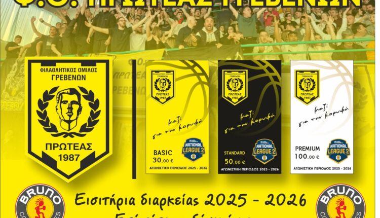 Η Διοίκηση του Φ.Ο.ΠΡΩΤΕΑΣ ΓΡΕΒΕΝΩΝ ενημερώνει τους φίλους του συλλόγου, ότι ξεκίνησε η διάθεση των εισιτηρίων διαρκείας για την νέα αγωνιστική χρονιά 2025 – 2026.