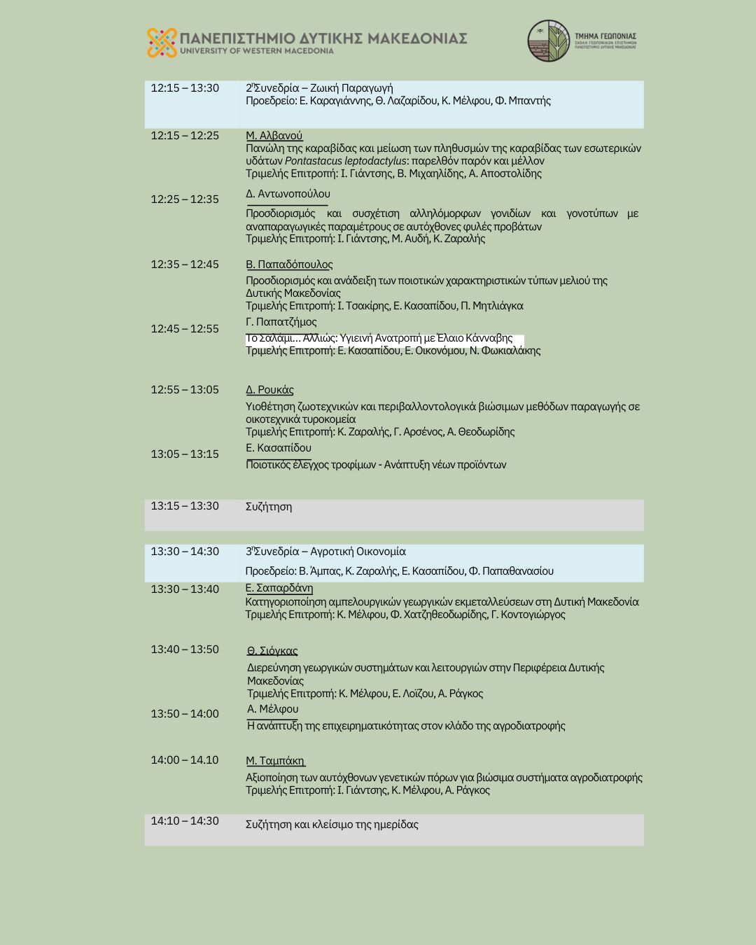 Το Τμήμα Γεωπονίας της Σχολής Γεωπονικών Επιστημών του Πανεπιστημίου Δυτικής Μακεδονίας διοργανώνει τη 2η Ημερίδα Ερευνητικού Έργου, την Πέμπτη 3 Απριλίου 2025, στο Αμφιθέατρο της Σχολής Γεωπονικών Επιστημών στη Φλώρινα (Νέο Κτίριο, Τέρμα Κοντοπούλου).