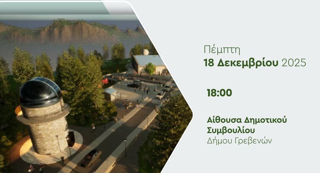Εκδήλωση παρουσίασης της μελέτης κατασκευής του Εκπαιδευτικού Αστρονομικού Πάρκου Όρλιακαδιοργανώνουν το Πανεπιστήμιο Δυτικής Μακεδονίας, η Περιφέρεια Δυτικής Μακεδονίας και ο Δήμος Γρεβενών, την Πέμπτη 18 Δεκεμβρίου 2025, στις 18:00, στην Αίθουσα Δημοτικού Συμβουλίου του Δήμου Γρεβενών.