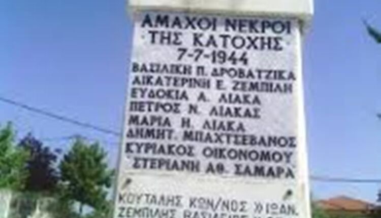 Την Πέμπτη 7 Ιουλίου 1944 ξημερώνει μια «μαύρη» μέρα για το χωριό μας. Οι Γερμανοί καταφθάνουν στο σχεδόν έρημο από κατοίκους χωριό, αφού η πλειοψηφία των κατοίκων κρύφτηκε στα γύρω δάση και αμέσως αρχίζουν να καίνε σπίτια και αποθήκες. Αφού τα λεηλάτησαν, κάψανε τα περισσότερα σπίτια και αποθήκες του χωριού και μαζί το Σχολείο και το Κοινοτικό Κατάστημα. Σύμφωνα με κάποιες προφορικές μαρτυρίες, μόνο δέκα περίπου σπίτια του χωριού μας δεν κάηκαν. Μαζί κάψανε ζωντανούς μέσα στα σπίτια τους και τρεις χωριανούς, τους: