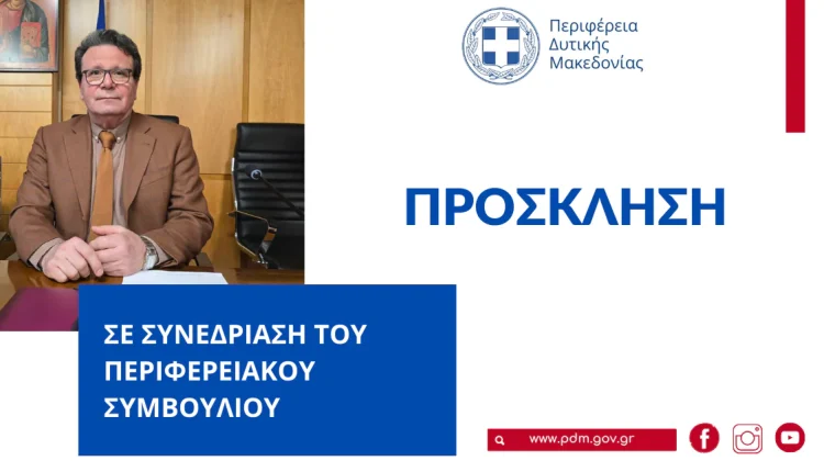 Σας καλούμε την 5η Μαΐου 2025 ημέρα Δευτέρα και ώρα 18:00, στην Αίθουσα Συνεδριάσεων του Περιφερειακού Συμβουλίου στο κτίριο της Περιφερειακής Ενότητας Κοζάνης (Δημοκρατίας 27) στην 2η Ειδική συνεδρίαση λογοδοσίας της περιφερειακής αρχής, του δεύτερου διμήνου του έτους 2025 σύμφωνα με τις διατάξεις του άρθρου 168Α του Νόμου 3852/2010, όπως προστέθηκε με το άρθρο 17 του Νόμου 5056/2023 και ισχύει.