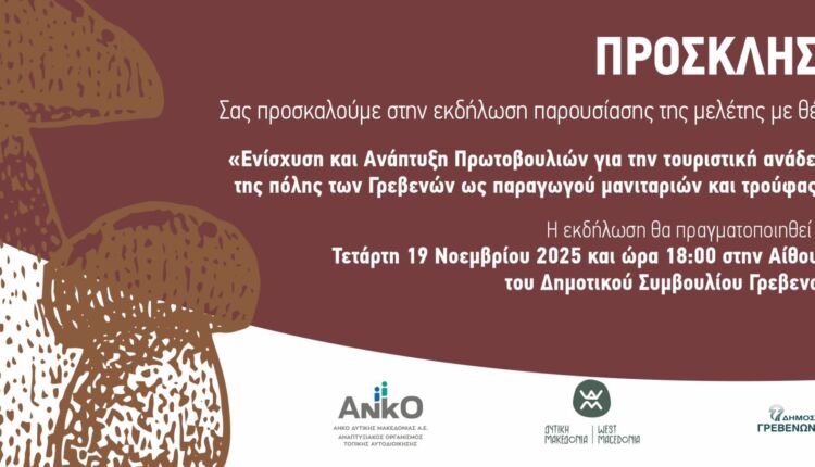 Πρόσκληση σε ενημερωτική εκδήλωση για την τουριστική ανάδειξη των Γρεβενών ως Πόλης των Μανιταριών και της Τρούφας