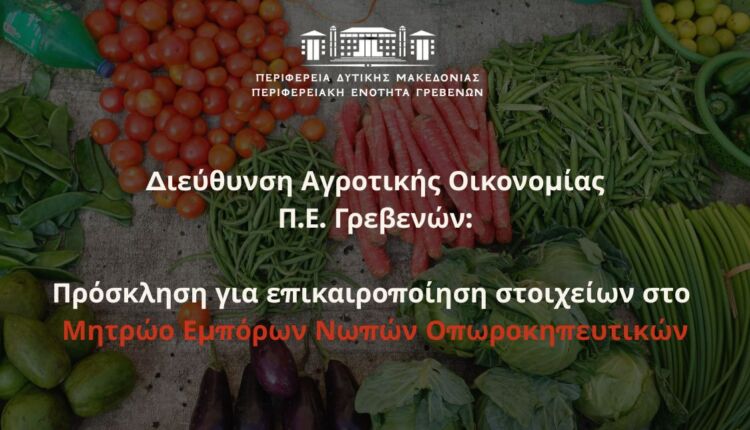 Π.Ε. Γρεβενών: Υποχρεωτική Ανανέωση Εγγραφής στο Μητρώο Εμπόρων Νωπών Οπωροκηπευτικών μέχρι 13 Μαρτίου 2026