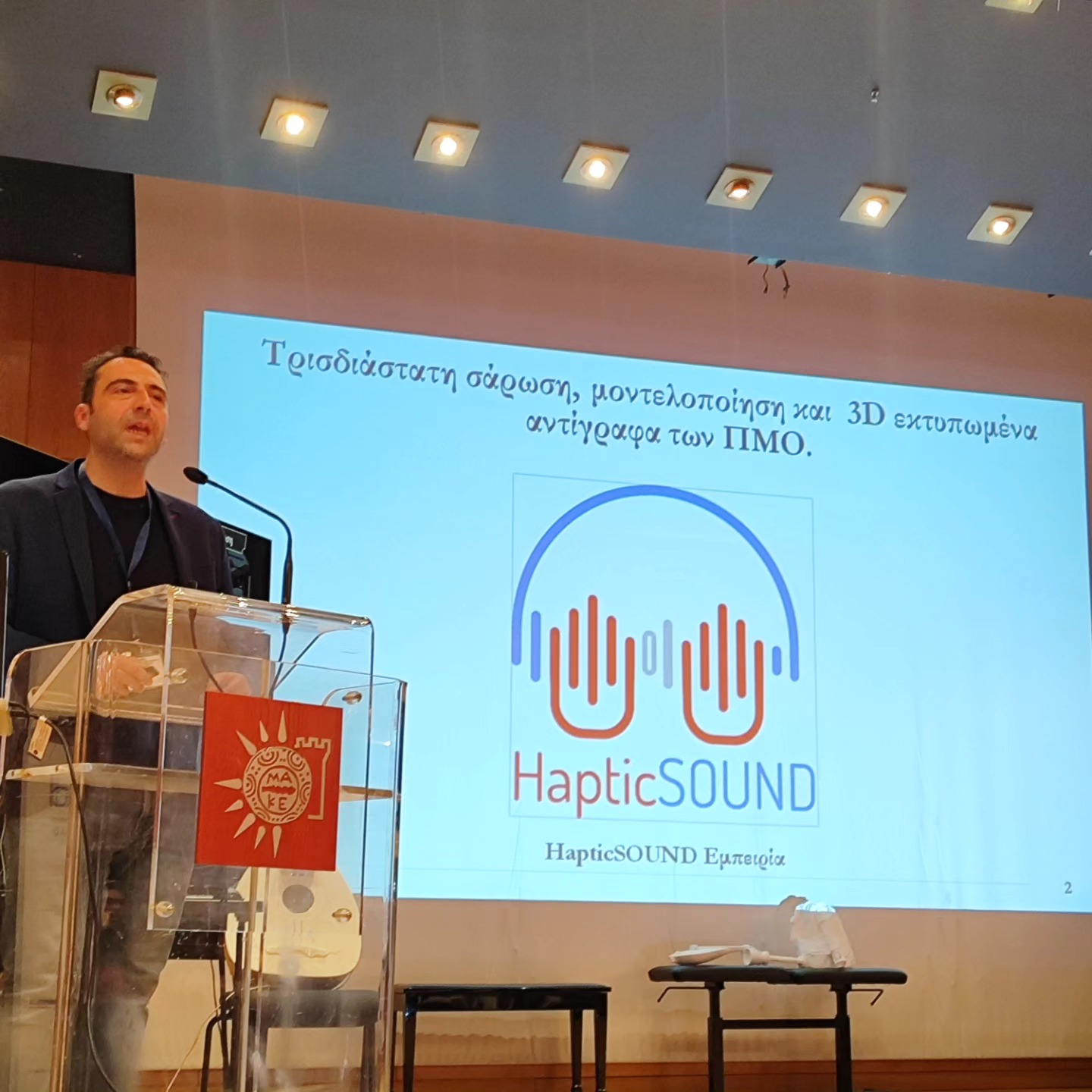 Το Τμήμα Μηχανικών Σχεδίασης Προϊόντων και Συστημάτων του Πανεπιστημίου Δυτικής Μακεδονίας και το Ινστιτούτο Παραδοσιακής Αρχιτεκτονικής και Πολιτιστικής Κληρονομιάς του ΠΑΚΕΚ “ΤΗΜΕΝΟΣ” συμμετείχαν την Τρίτη 14/11/2023 σε μια ξεχωριστή εκδήλωση, που έλαβε χώρα στην Αίθουσα Τελετών του Πανεπιστημίου Μακεδονίας, με τίτλο “Ημερίδα Παρουσίασης του έργου HapticSOUND“ (https://hapticsound.uom.gr/hs/). Το HapticSOUND ή διαφορετικά το “Σύστημα ανάλυσης, τεκμηρίωσης και επίδειξης παραδοσιακών μουσικών οργάνων του Μουσείου Κρητικής Εθνολογίας” σχεδιάστηκε και υλοποιείται από μια αξιόλογη ομάδα εταίρων επιτυγχάνοντας πολλαπλούς καινοτόμους στόχους.