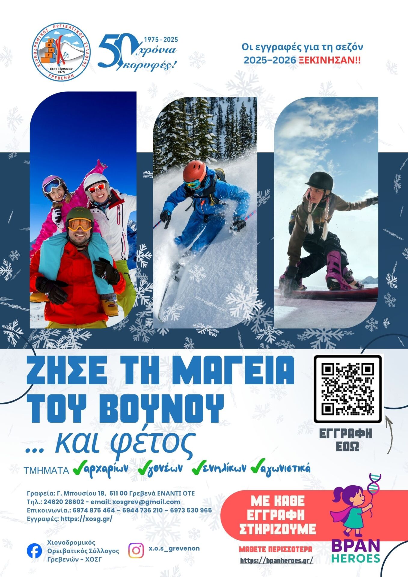 Ο Χιονοδρομικός Ορειβατικός Σύλλογος Γρεβενών ανακοινώνει με χαρά την έναρξη των εγγραφών για τη νέα χιονοδρομική περίοδο 2025–2026.