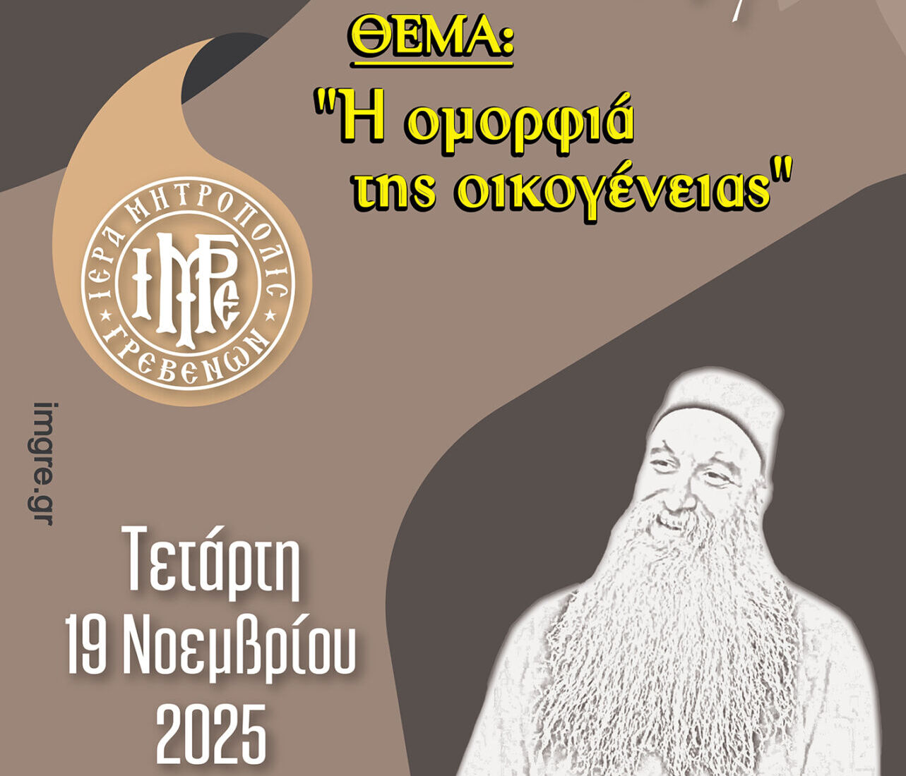 Ξεκινά και φέτος με την ευλογία του σεπτού ποιμενάρχη μας κ. Δαβίδ η Σχολή Γονέων και Νέων Ζευγαριών για 9η συναπτή χρονιά. Έτσι την Τετάρτη 19 Νοεμβρίου 2025 στις 7 μ.μ. στο Πνευματικό Κέντρο της Ι.Μ. Γρεβενών ο ξακουστός αγιογράφος π. Λουκάς από την Ιερά Μονή Ξενοφώντος του Αγίου Όρους θα διαπραγματευτεί το θέμα: «Η ομορφιά της οικογένειας».