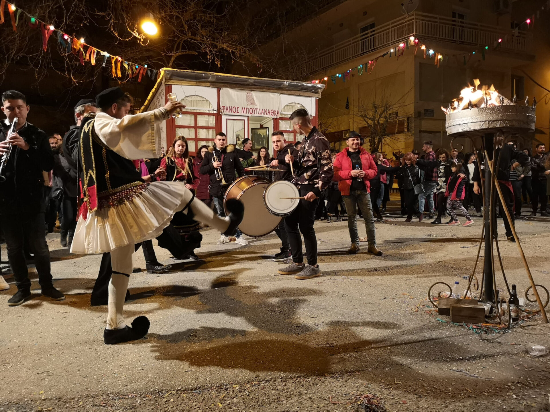 Στο τραγούδι των Φανών κεντρικός είναι ο ρόλος του κορυφαίου τραγουδιστή. Γύρω από τη φωτιά σχηματίζεται ένας κύκλος σωμάτων και φωνών. Εκείνος ξεκινά τον στίχο και οι υπόλοιποι απαντούν, επαναλαμβάνοντας ρυθμικά τα λόγια του και χτυπώντας παλαμάκια στον ίδιο ρυθμό. Οι φλόγες φωτίζουν πρόσωπα και σκιές, ενώ η νύχτα γεμίζει τραγούδι, γέλια και τη μυρωδιά του φαγητού. Η βραδιά κυλά γρήγορα, σχεδόν ανεπαίσθητα, αφήνοντας πίσω της έντονες εικόνες και αναμνήσεις.