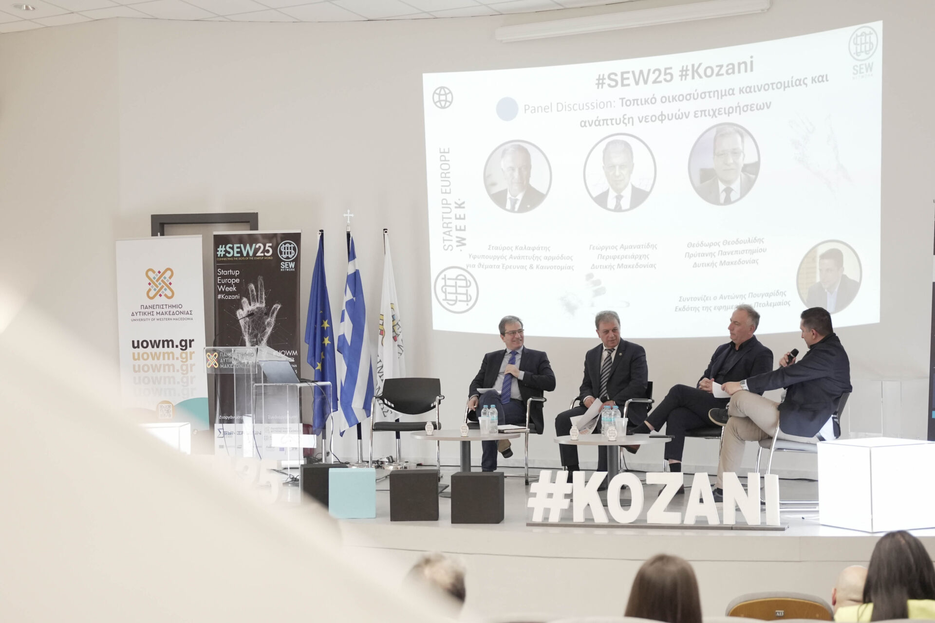 Η Startup Europe Week επέστρεψε στην Κοζάνη για δεύτερη συνεχή χρονιά, στο χώρο του Πανεπιστημίου Δυτικής Μακεδονίας, το απόγευμα της Δευτέρας 12 Μαΐου 2025, με στόχο την προώθηση της καινοτομίας και της επιχειρηματικότητας σε τοπικό, εθνικό και ευρωπαϊκό επίπεδο. Η εκδήλωση εντάχθηκε στο πλαίσιο της Πράξης «Κόμβος Ψηφιακής Καινοτομίας Δυτικής Μακεδονίας – SYNERGiNN EDIH» και υλοποιήθηκε με συνδιοργανωτές το Πανεπιστήμιο Δυτικής Μακεδονίας, την Περιφέρεια Δυτικής Μακεδονίας, την ΑΝΚΟ ΑΕ / Enterprise Europe Network και το Ε.Β.Ε. Κοζάνης.