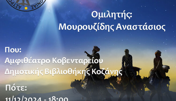 Ο Αναστάσιος Μουρουζίδης, Φυσικός, Μέλος του Δ.Σ. του Αστρονομικού Συλλόγου Δυτικής Μακεδονίας και του οργανισμού “American Association of Variable Star Observers (AAVSO)”, μας προσκαλεί να ανακαλύψουμε τα μυστικά πίσω από το θρυλικό Άστρο της Βηθλεέμ.