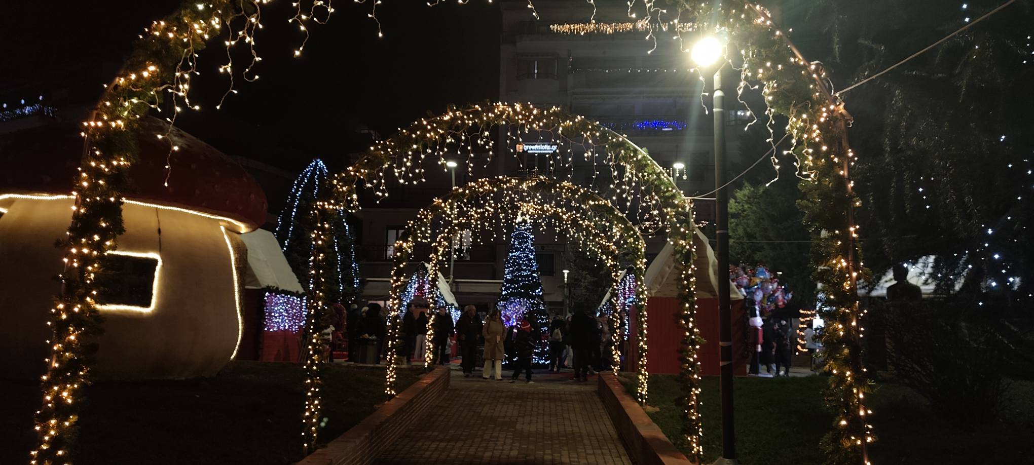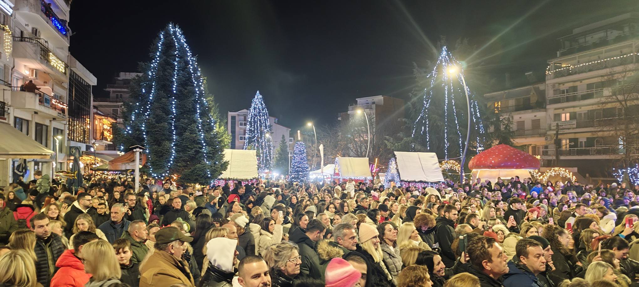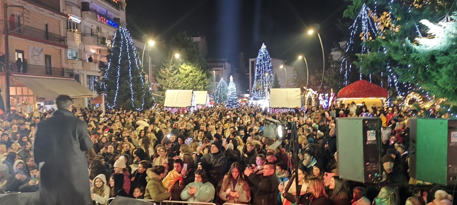 Το δέντρο φωτίστηκε εντυπωσιακά, σηματοδοτώντας την έναρξη των χριστουγεννιάτικων εκδηλώσεων, ενώ ο Κώστας Μαρτάκης διασκέδασε τον κόσμο με γνωστές επιτυχίες του, δημιουργώντας ζεστή και χαρούμενη ατμόσφαιρα.