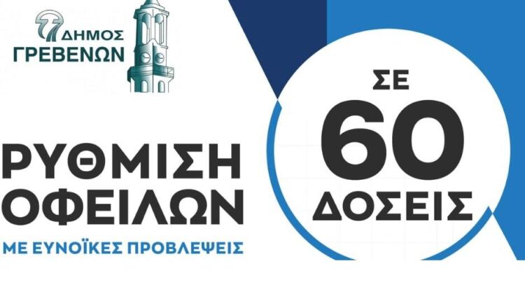 Ο Δήμος Γρεβενών ενημερώνει τους δημότες του ότι παρατείνεται έως και τις 14 Μαρτίου 2025, η προθεσμία για τη ρύθμιση των οφειλών προς τον Δήμο, έως και σε 60 δόσεις, σύμφωνα με το άρθρο 38 του Ν.5176/2025.