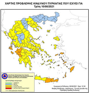 Ο Δήμος Γρεβενών ενημερώνει τους δημότες ότι σύμφωνα με τον χάρτη πρόβλεψης κινδύνου πυρκαγιάς, που εκδίδει καθημερινά η Γενική Γραμματεία Πολιτικής Προστασίας, για αύριο Τρίτη 10 Αυγούστου 2021, προβλέπεται υψηλός κίνδυνος πυρκαγιάς (κατηγορία κινδύνου 3-κίτρινο) σε όλες τις περιοχές της Περιφερειακής Ενότητας Γρεβενών.