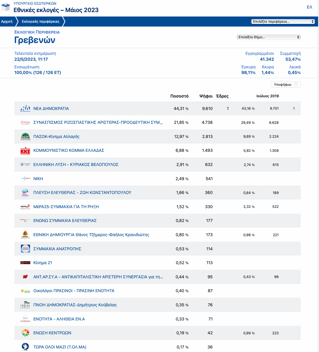 Δείτε τα αποτελέσματα για τις εθνικές εκλογές στην περιφέρεια Γρεβενών.