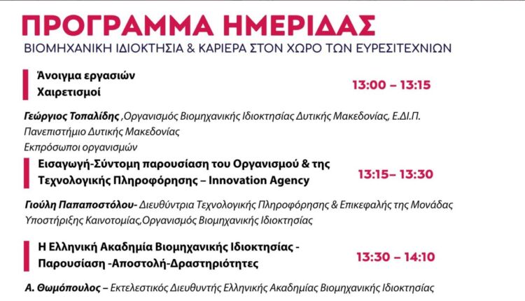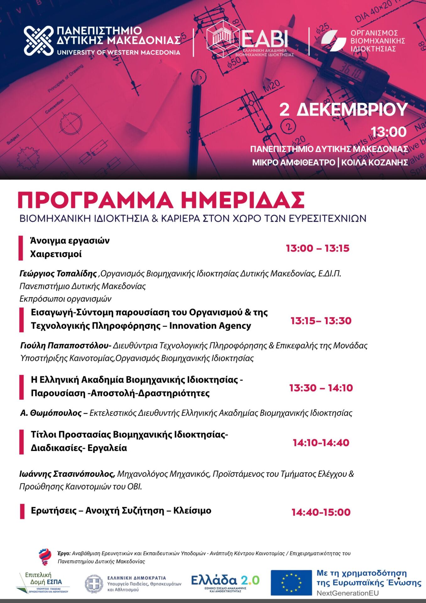 Ημερίδα για τη Βιομηχανική Ιδιοκτησία και την Καριέρα στον χώρο των Ευρεσιτεχνιών στο Πανεπιστήμιο Δυτικής Μακεδονίας