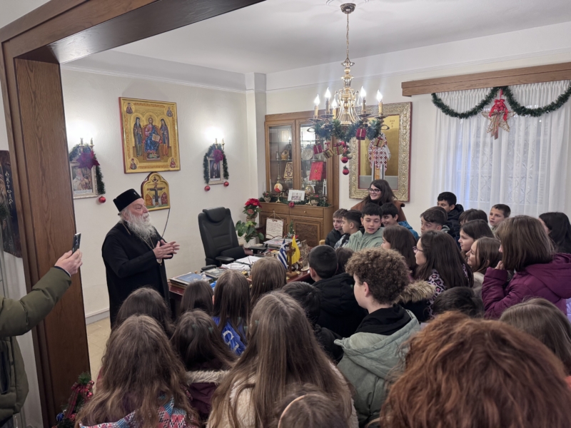 Σήμερα, το 2ο Δημοτικό Σχολείο Γρεβενών επισκέφθηκε τα γραφεία της Ιεράς Μητροπόλεως Γρεβενών, όπου οι μαθητές είχαν τη χαρά να συναντήσουν τον Σεβασμιώτατο Μητροπολίτη Γρεβενών και να του ψάλλουν τα παραδοσιακά κάλαντα των Χριστουγέννων.