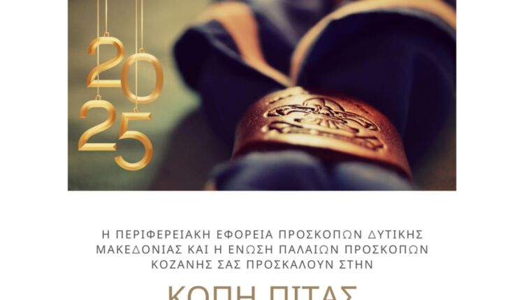 Η Περιφερειακή Εφορεία Προσκόπων Δυτικής Μακεδονίας και η Ένωση Παλαιών Προσκόπων Κοζάνης, σας προσκαλούν στην καθιερωμένη κοπή της πίτας για το νέο έτος, την Κυριακή 26 Ιανουαρίου και ώρα 13.30 στη Λέσχη Αξιωματικών Φρουράς Κοζάνης. Θα ακολουθήσει γεύμα. Για πληροφορίες και κρατήσεις θέσεων καλέστε στα τηλέφωνα 6948580173 Γιώργος Παφύλης, 6945424446 Δημήτρης Κοκκαλιάρης.
