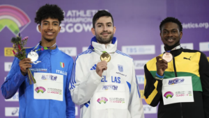 O Μίλτος Τεντόγλου κατέκτησε το πρωί του Σαββάτου (2/3) την πρώτη θέση στον τελικό του άλματος εις μήκος στο Παγκόσμιο Πρωτάθλημα Στίβου και λίγες ώρες αργότερα κρέμασε στο στήθος του το χρυσό μετάλλιο και ο Εθνικός μας ύμνους ήχησε στη Σκωτία.