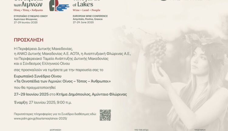 Ξεκινά το Ευρωπαϊκό Συνέδριο Οίνου «Τα Οινοπέδια των Λιμνών: Οίνος – Τόπος – Άνθρωποι» από τις 27 έως τις 29 Ιουνίου 2025