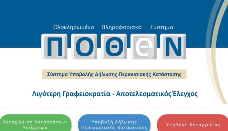 Η διαδικασία αυτή περιλαμβάνει την ηλεκτρονική υποβολή της Δήλωσης Περιουσιακής Κατάστασης (Δ.Π.Κ.) και της Δήλωσης Οικονομικών Συμφερόντων (Δ.Ο.Σ.) μέσω του πληροφοριακού συστήματος «Πόθεν Έσχες», το οποίο είναι προσβάσιμο στην ιστοσελίδα www.pothen.gr, εντός της Ενιαίας Ψηφιακής Πύλης της Δημόσιας Διοίκησης (gov.gr).