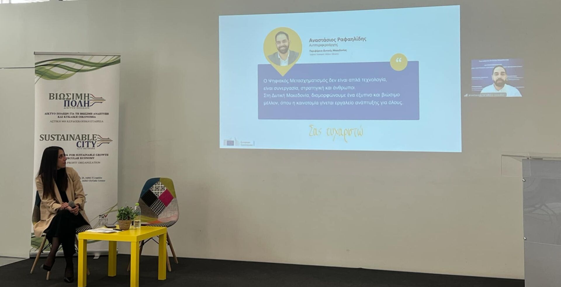 Στο πλαίσιο της εκδήλωσης, ο Αντιπεριφερειάρχης Διαφάνειας, Ηλεκτρονικής Διακυβέρνησης και Ψηφιακού Μετασχηματισμού της Περιφέρειας Δυτικής Μακεδονίας, Αναστάσιος Ραφαηλίδης, παρουσίασε τις δράσεις της Περιφέρειας και την ένταξή της στο Ευρωπαϊκό Πρόγραμμα τεχνικής υποστήριξης Living-in.EU.