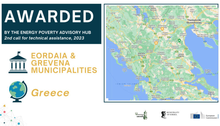 Ως εταίροι οι Δήμοι Γρεβενών και Εορδαίας, μαζί με το Cluster Βιοοικονομίας και Περιβάλλοντος Δυτικής Μακεδονίας (CluBE) και σε συνεργασία με την Περιφερειακή Ένωση Δήμων Δυτικής Μακεδονίας (ΠΕΔ ΔΜ), αποτελούν 2 από τους 5 δικαιούχους Ελληνικούς Δήμους για τη λήψη τεχνικής υποστήριξης από το Energy Poverty Advisory Hub (EPAH), την πρωτοβουλία της Κομισιόν για την αντιμετώπιση της ενεργειακής φτώχειας.