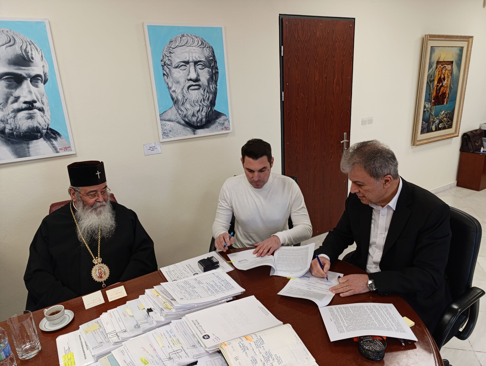 Τη σύμβαση για την «ΕΓΚΑΤΑΣΤΑΣΗ ΑΝΤΛΙΩΝ ΘΕΡΜΟΤΗΤΑΣ ΣΤΟΝ Ι.Ν. ΑΓΙΟΥ ΝΙΚΟΛΑΟΥ ΚΡΟΚΟΥ», υπέγραψε την Τρίτη 11 Φεβρουαρίου 2025 ο Περιφερειάρχης Δυτικής Μακεδονίας Γιώργος Αμανατίδης με την ανάδοχο εταιρεία, παρουσία του Μητροπολίτη Σερβίων και Κοζάνης Παύλου και του Αντιπεριφερειάρχη Αρμόδιου για τα Τεχνικά Έργα Λάζαρου Γκερεχτέ.