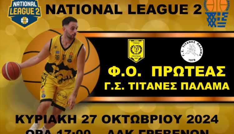 Τον Γ.Σ Τιτάνες Παλαμά θα αντιμετωπίσει ο Φ.Ο. Πρωτέας Γρεβενών την Κυριακή 27 Οκτωβρίου και ώρα 17:00 στο ΔΑΚ Γρεβενών, για την 4η αγωνιστική της National League 2.