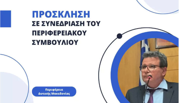 Σας καλούμε σε συνεδρίαση (δια ζώσης) του Περιφερειακού Συμβουλίου Δυτικής Μακεδονίας, η οποία θα πραγματοποιηθεί την 5η Δεκεμβρίου 2024, ημέρα Πέμπτη και ώρα 17:00 στην αίθουσα συνεδριάσεων του κτιρίου της Περιφερειακής Ενότητας Κοζάνης (πρώην Νομαρχιακού Συμβουλίου Κοζάνης), με θέματα: