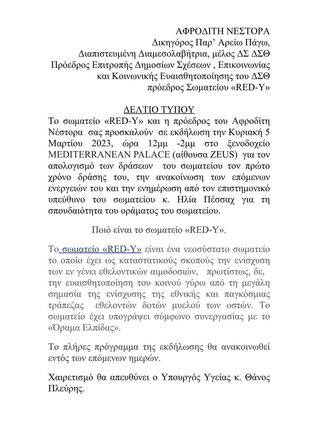 • Πρόσκληση στην εκδήλωση για τον απολογισμό δράσεων του σωματείου RED-Y