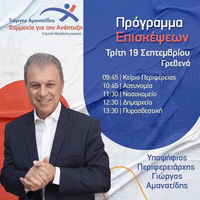 Στα Γρεβενά σήμερα ο υποψήφιος περιφερειάρχης Γιώργος Αμανατίδη Γρεβενά Από igrevena Τελευταία ενημέρωση Sep 19, 2023 Κοινοποίηση Κοινοποίηση