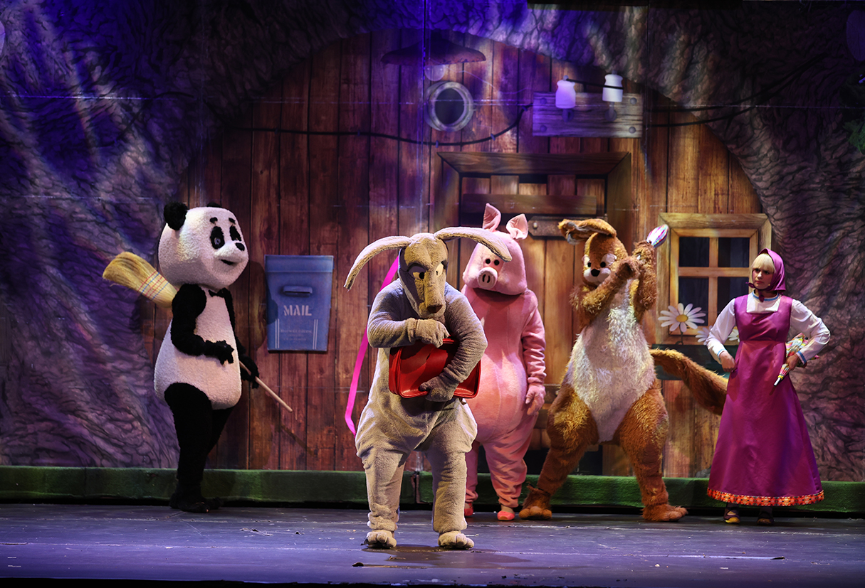 «Η Μάσα και ο Αρκούδος, μια μεγάλη γιορτή» η επίσημη θεατρική παράσταση, ζωντανεύει τον μαγικό κόσμο της παγκόσμιας επιτυχημένης σειράς κινουμένων σχεδίων. Με τα αυθεντικά κοστούμια του εξωτερικού.