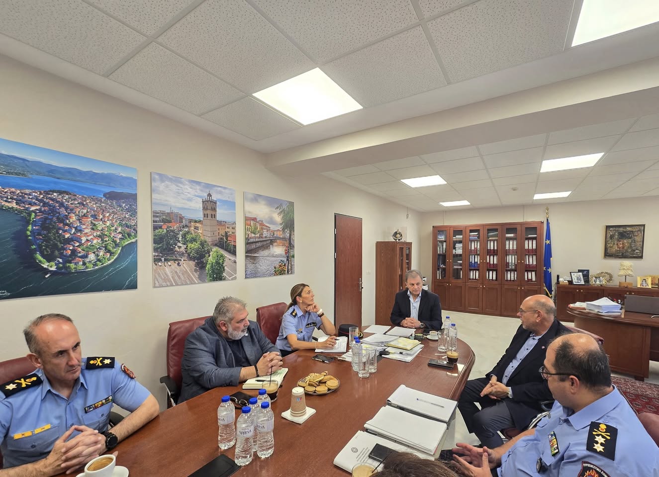 Η συνάντηση πραγματοποιήθηκε παρουσία του Δημάρχου Εορδαίας Παναγιώτη Πλακεντά, του Διοικητή της Περιφερειακής Πυροσβεστικής Διοίκησης Δυτικής Μακεδονίας Ιωάννη Αμανατίδη, του Προϊστάμενου Κλάδου Διοικητικής Υποστήριξης Υποστράτηγου Ιωάννη Λουκάκη,και της Διοικήτριας της Σχολής Πυροσβεστών Πτολεμαϊδας Πυράρχου Αρχοντίας Σερέτη.
