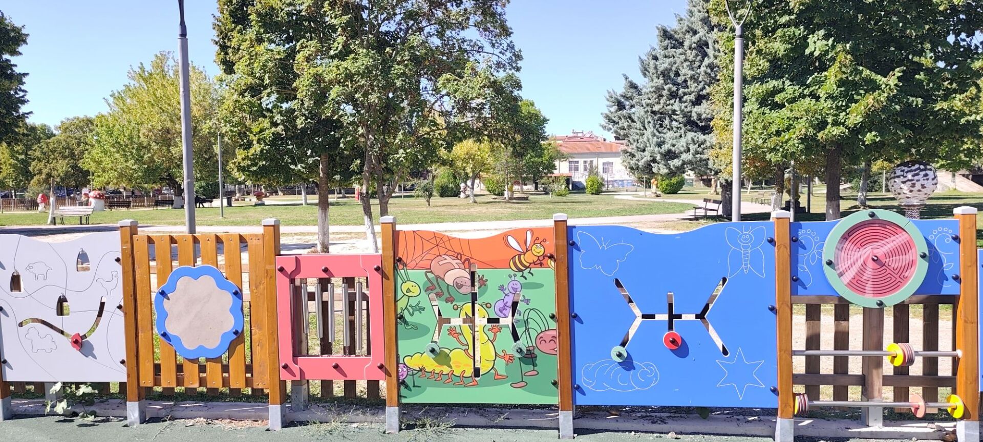 Μεταξύ άλλων, περιλαμβάνει κούνιες νηπίων-παίδων αλλά και ειδικού καθίσματος για άτομα που χρειάζονται περισσότερη στήριξη κατά τη χρήση του οργάνου, ώστε όλα τα παιδιά να μπορούν να παίξουν μαζί και να συναναστραφούν διασκεδάζοντας. Επιπλέον, τοποθετήθηκαν διαδραστικά πάνελ δραστηριοτήτων, σύνθετα, με ειδικές ράμπες, θεματικά παιχνίδια καθώς και μπάλα μουσικής και αφήγησης, αποτελώντας μία ενδιαφέρουσα ενασχόληση για κάποιον επισκέπτη με δυσκολίες όρασης.