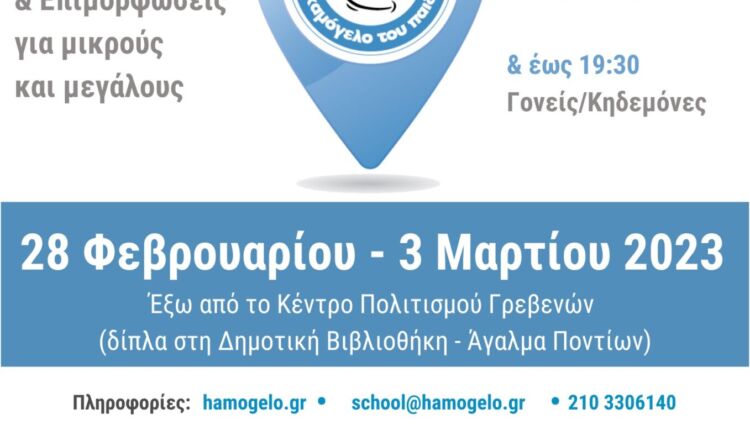 Το απογεύματα θα είναι αφιερωμένα στους ενήλικες των Γρεβενών. Συγκεκριμένα, από τη Τρίτη 28 Φεβρουαρίου έως Παρασκευή 3 Μαρτίου 2023 (έως 19:30), οι γονείς/κηδεμόνες θα μπορούν να συμμετέχουν σε διαδραστική παρέμβαση με θέματα που μπορεί να αφορούν την ασφαλή πλοήγηση στο διαδίκτυο, την ενδοσχολική βία και τον εκφοβισμό, τα Δικαιώματα των παιδιών, τις εξαφανίσεις, τη σημασία της ψυχικής ανθεκτικότητας κ.ά., μόνοι/ες τους, οικογενειακά μαζί με τα παιδιά τους ή οργανωμένοι/ες σε ομάδες/συλλόγους. Επίσης, οι εκπαιδευτικοί μπορούν να συμμετέχουν σε εντατικές επιμορφώσεις επάνω σε σχετικές θεματολογίες.