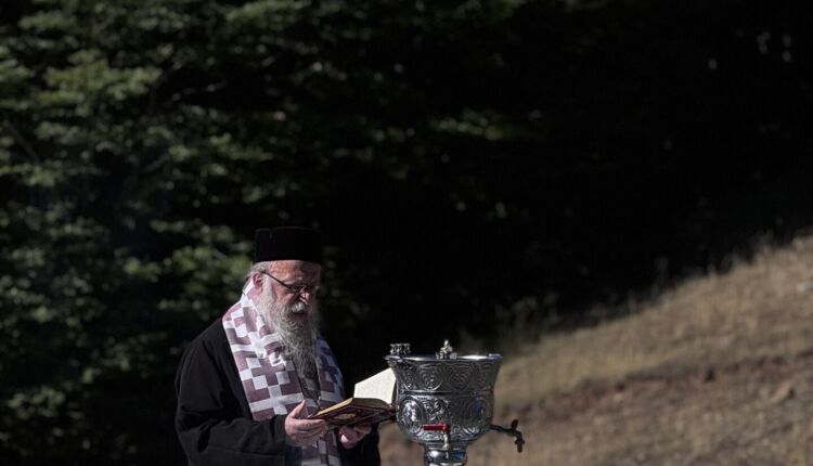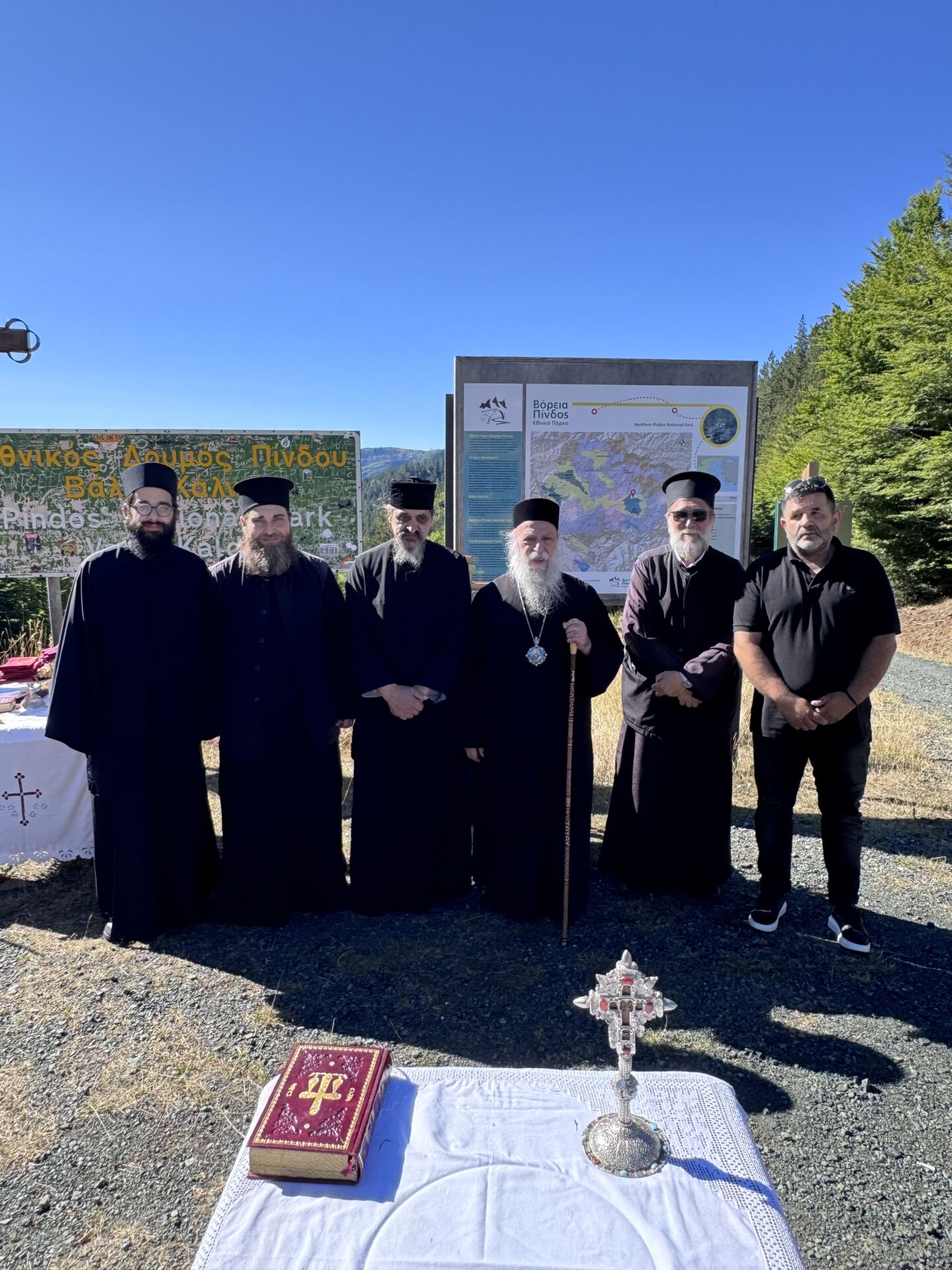Μετά το πέρας της Θείας Λειτουργίας και υπό τη σκιά των πεύκων, ο Σεβασμιώτατος τέλεσε τον καθιερωμένο Αγιασμό του νέου μηνός και του νέου εκκλησιαστικού έτους, ευλογώντας τους πιστούς που προσήλθαν για να συμπροσευχηθούν στον αχειροποίητο ναό του Θεού: τη φύση.