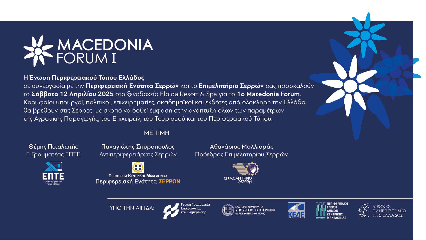 1ο MACEDONIA FORUM το Σάββατο 12 Απριλίου στις Σέρρες Ελλάδα Από igrevena Τελευταία ενημέρωση Apr 10, 2025 Κοινοποίηση 1ο MACEDONIA FORUM Κοινοποίηση