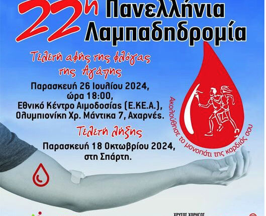 22η Πανελλήνια Λαμπαδηδρομία Εθελοντών Αιμοδοτών Ελλάδος